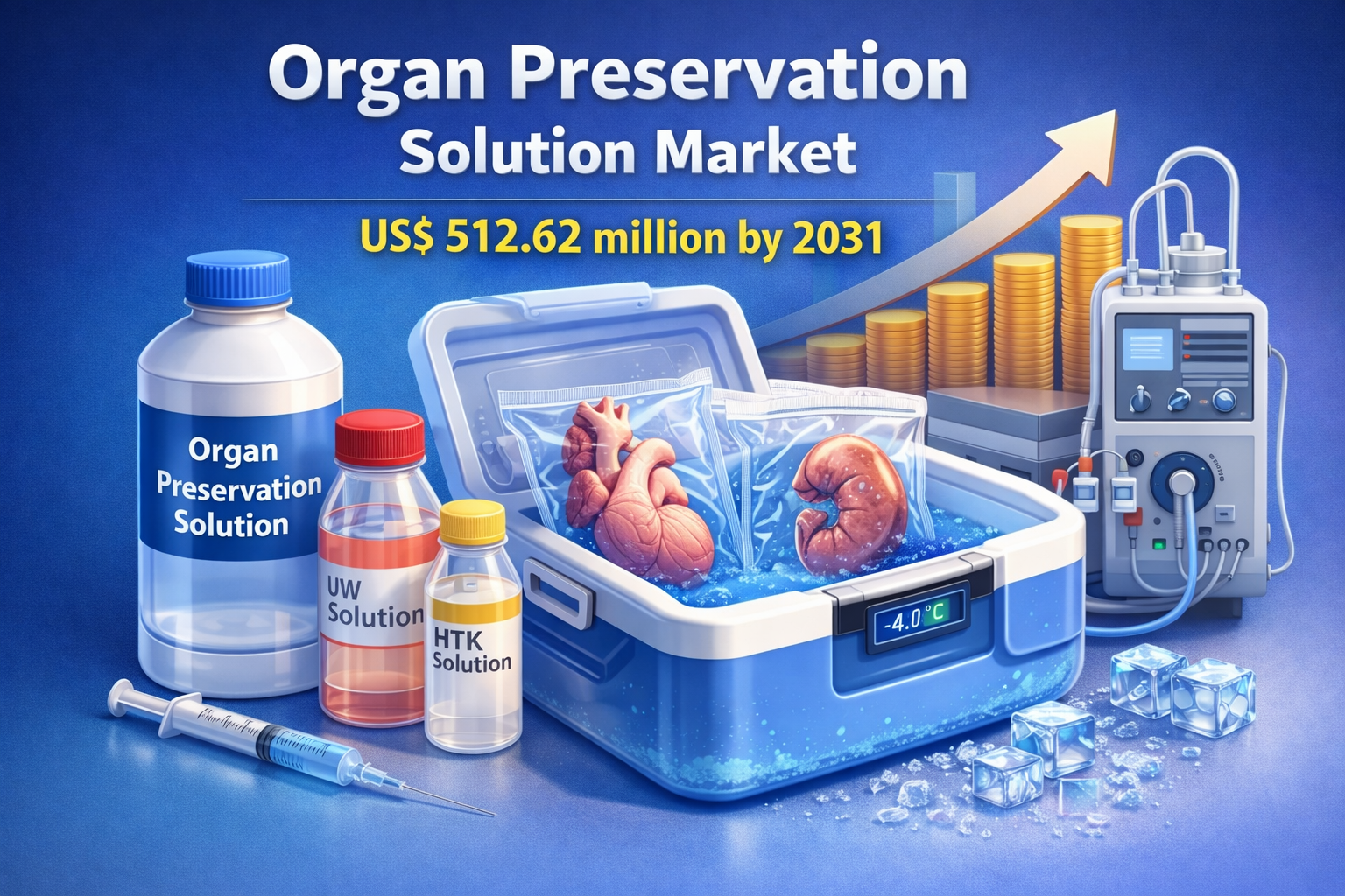 The organ preservation solution market size is projected to reach US$ 512.62 million by 2031 from US$ 274.41 million in 2023. The market is expected to register a CAGR of 8.2% during 2023 to 2031. This steady growth reflects increasing transplant volumes and rising investments in advanced preservation technologies.