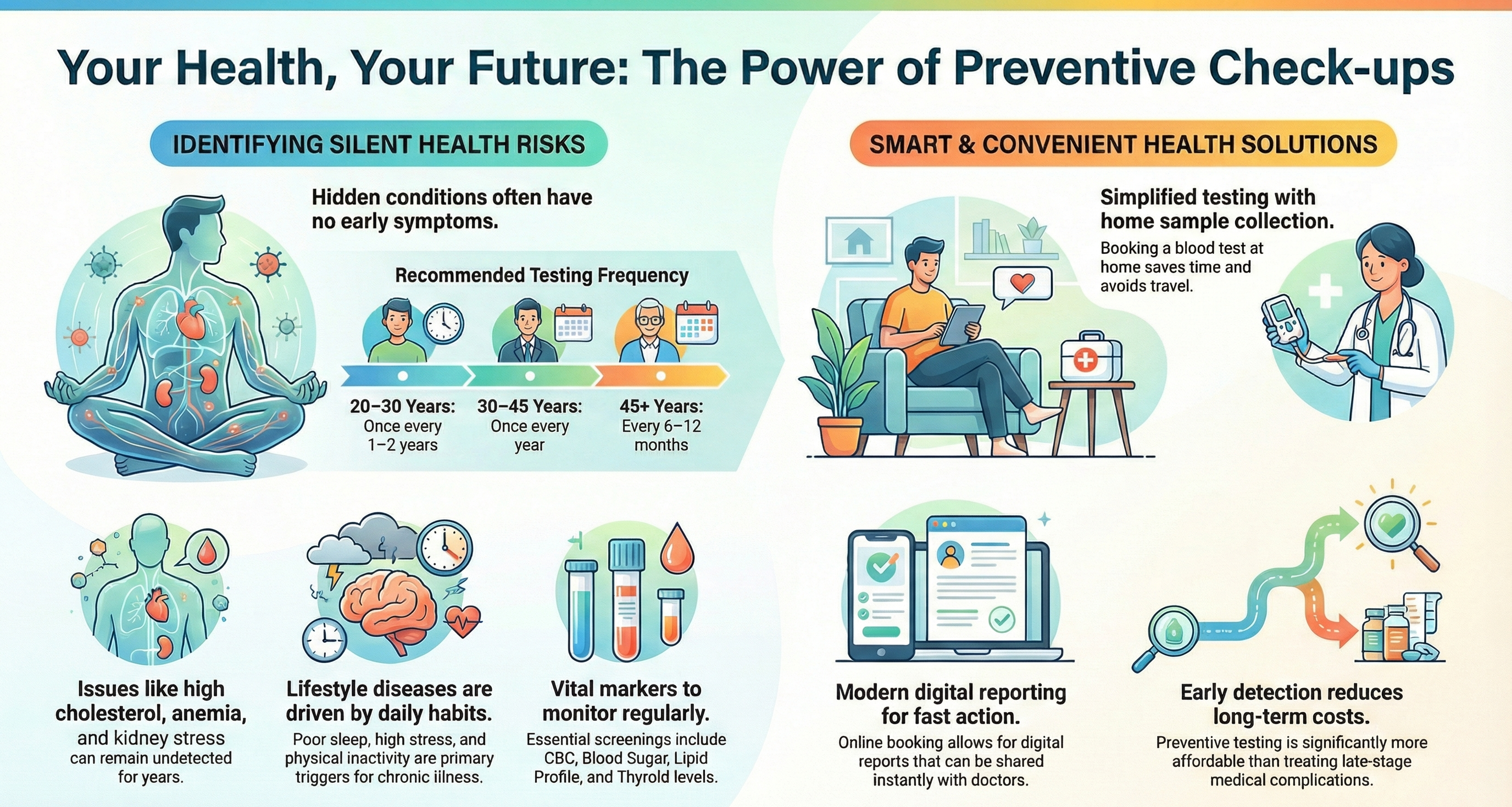 Your body changes continuously. Blood sugar, cholesterol, hormones, and organ functions vary with age, lifestyle, and diet. Many illnesses progress quietly inside the body. By the time visible symptoms appear, significant damage may already have occurred.