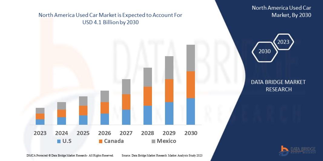 North America Used Car Market – was valued at USD 1.2 billion in 2022 and is expected to reach USD 4.1 billion by 2030, registering a CAGR of 9.6% during the forecast period of 2023 to 2030.