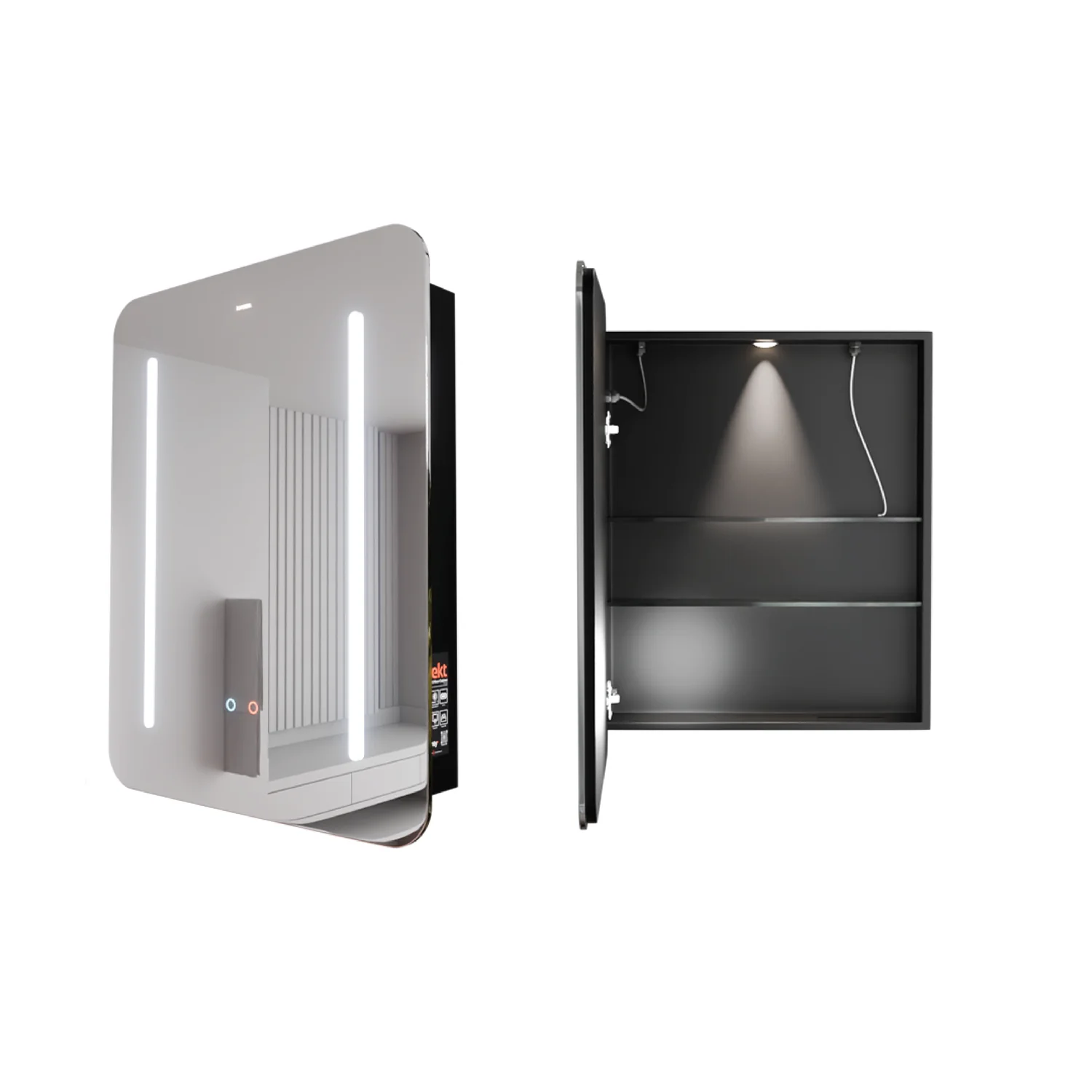 A modern bathroom mirror cabinet with lights includes intelligent features that improve your everyday experience: