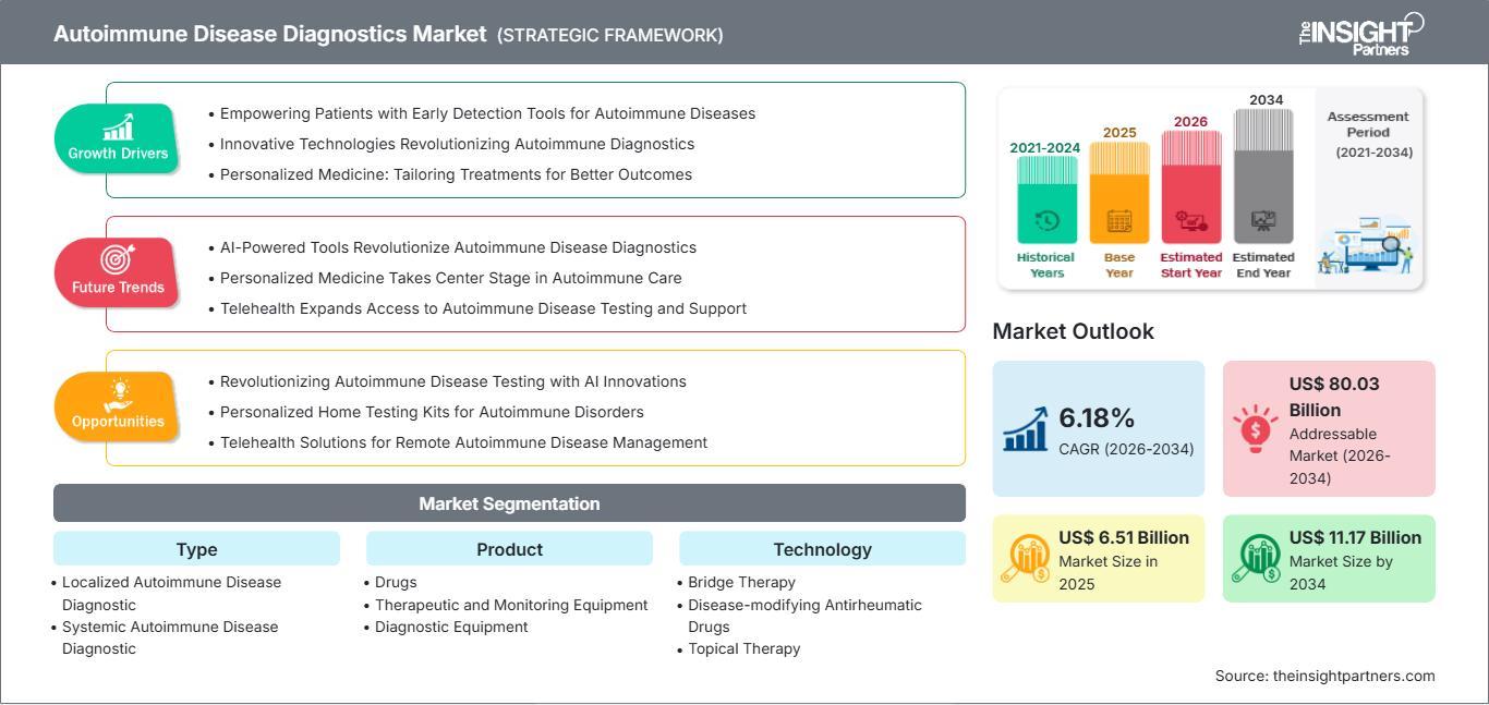 The Autoimmune Disease Diagnostics Market is projected to reach US$ 11.17 Billion by 2034, growing from US$ 6.51 Billion in 2025 at a CAGR of 6.18% during 2026–2034. This growth is fueled by rising prevalence of autoimmune disorders, technological innovations, and increased healthcare access. Autoimmune Disease Diagnostics Market Analysis and Overview highlights that early diagnosis and monitoring of autoimmune diseases, such as rheumatoid arthritis, lupus, type 1 diabetes, and multiple sclerosis, remain central to improving patient outcomes. The increasing adoption of immunoassays, molecular diagnostics, and point-of-care technologies is reshaping the market landscape, while government initiatives and awareness campaigns are further expanding the reach of diagnostic solutions globally.
