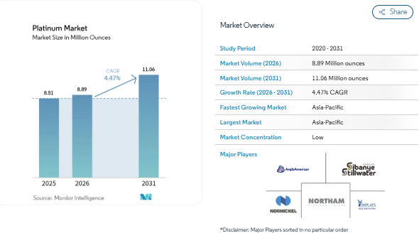 Unlock detailed segmentation, trends, and competitor analysis-click to learn more - https://www.mordorintelligence.com/industry-reports/platinum-market?utm_source=stusocial