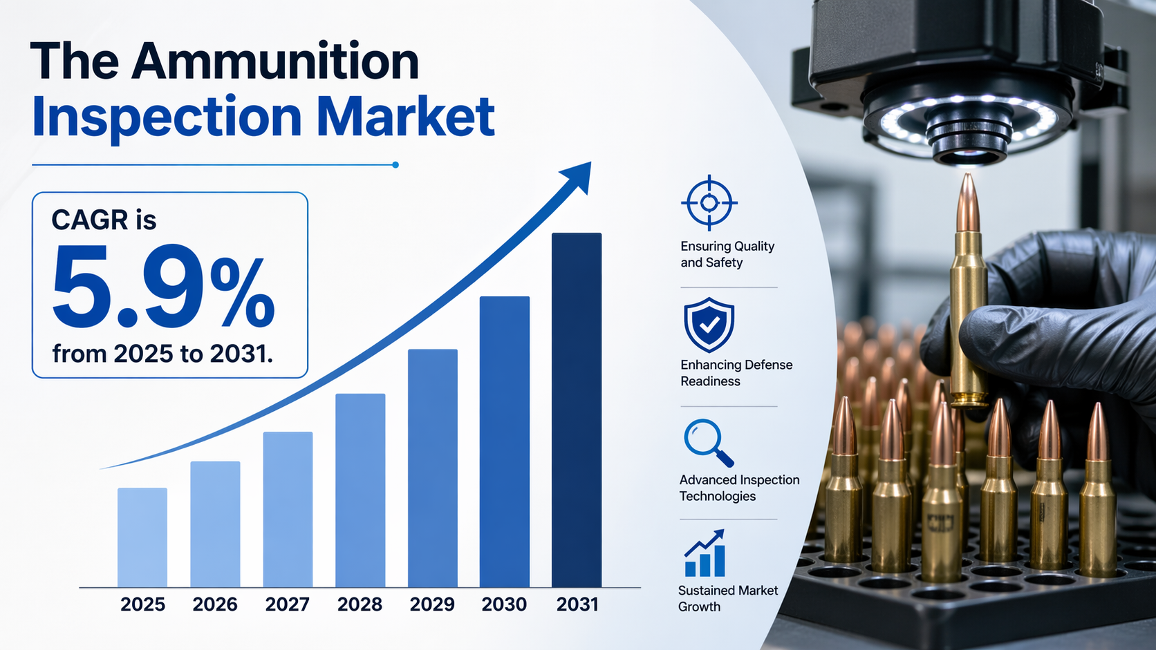 The growth of this sector is fueled by the transition from manual sampling to 100 percent automated inspection. Manufacturers are increasingly adopting high-speed vision systems and sensor-based technologies to maintain quality at high production volumes. According to industry data, the Ammunition Inspection Market is expected to register a CAGR of 5.9% from 2025 to 2031. This growth reflects the ongoing commitment of global powers to replenish their stockpiles with smarter, more reliable ammunition. As the complexity of caliber designs increases, the role of sophisticated inspection hardware and software becomes more critical in preventing weapon malfunctions and ensuring personnel safety.